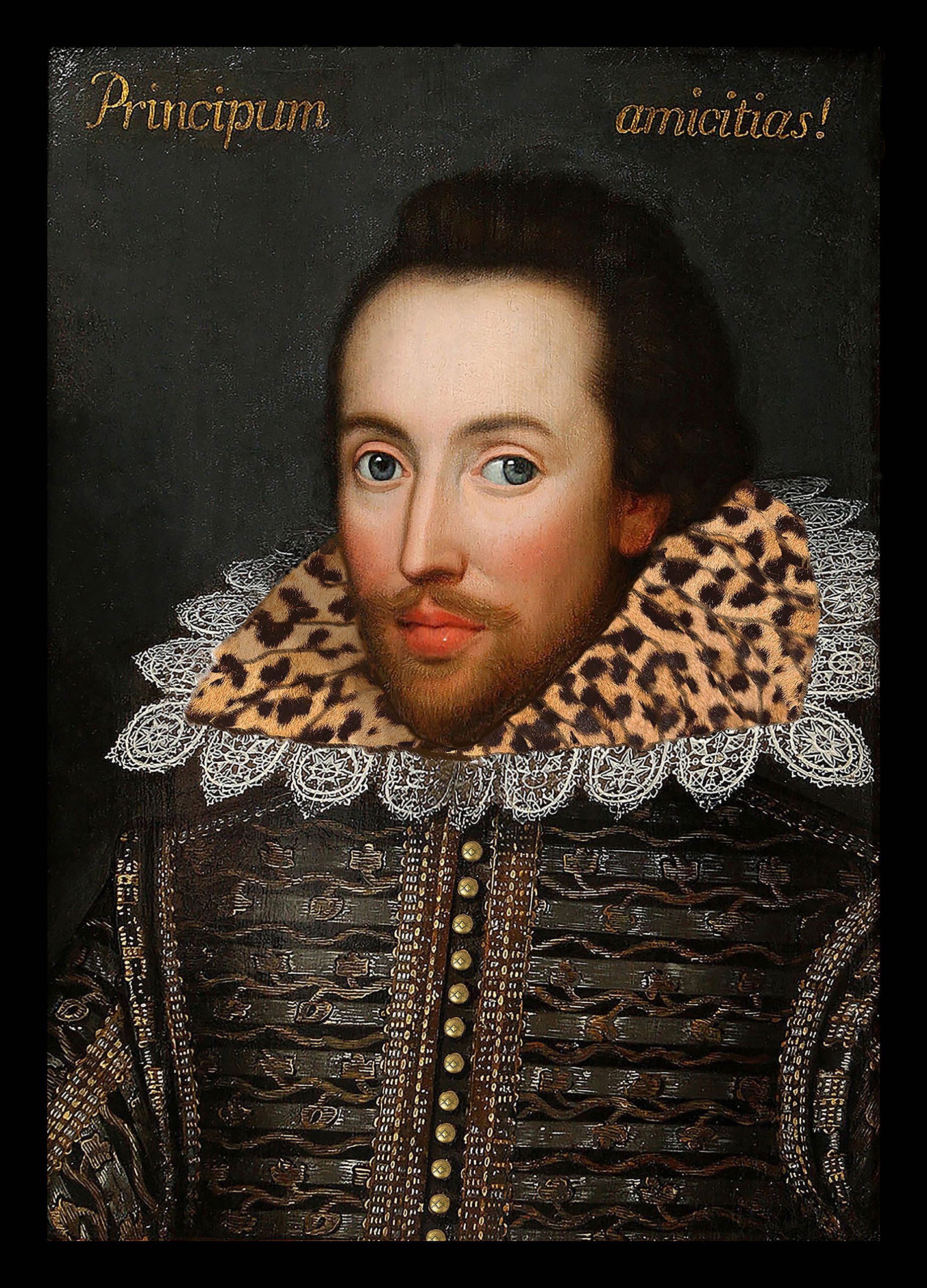Cuadro con intervencion digital cuidadosa, realizada por Julius Thiel, impreso en terciopelo fino. Representa a Shakespeare. Con bastidor de madera. Autor desconocido pintado circa 1610.
